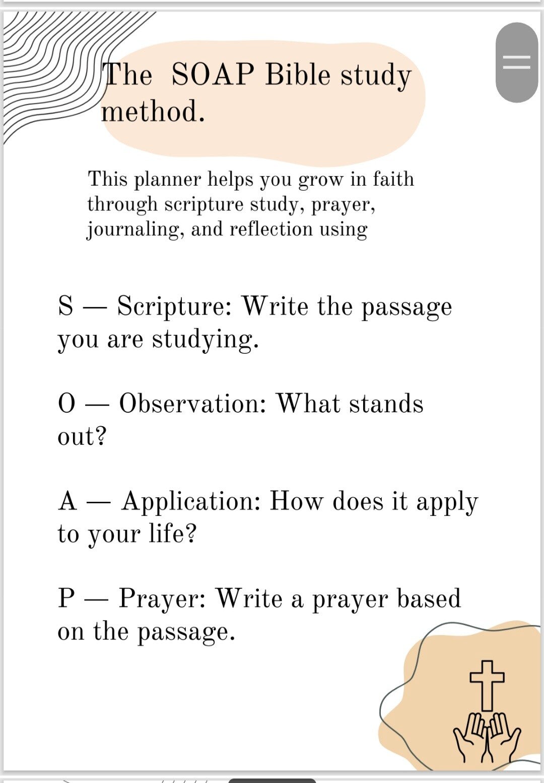 Each page invites you to prioritise what truly matters. Alongside practical planning sections for your daily, weekly, and monthly goals, you’ll find dedicated spaces for prayer, scripture reflection, and gratitude. Whether you’re setting intentions for the day or reflecting on God’s blessings, this journal helps keep your focus rooted in faith.