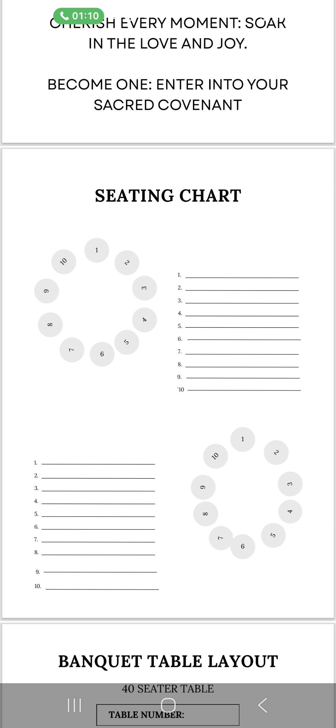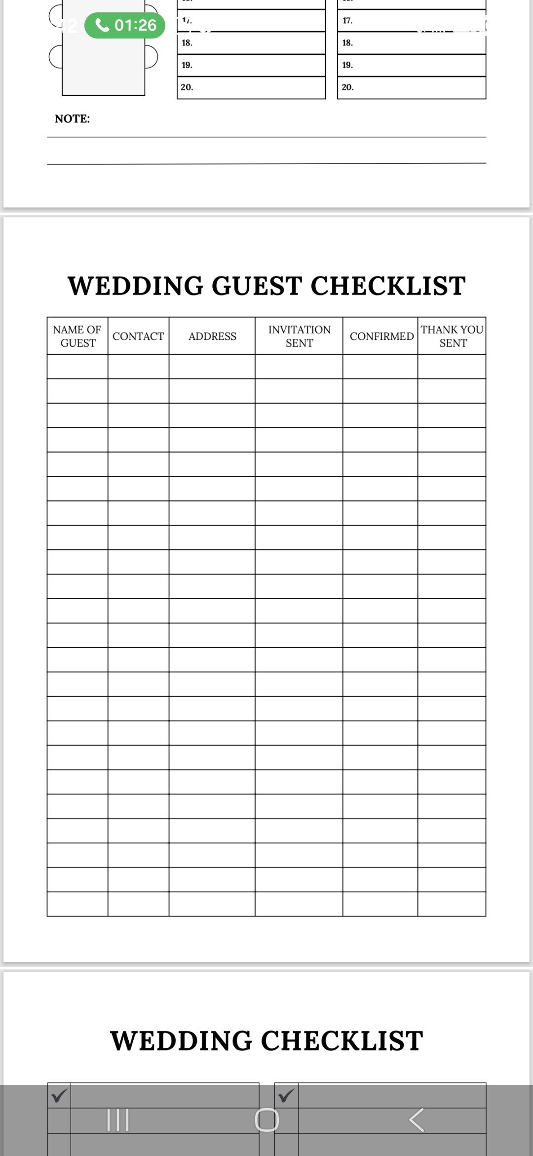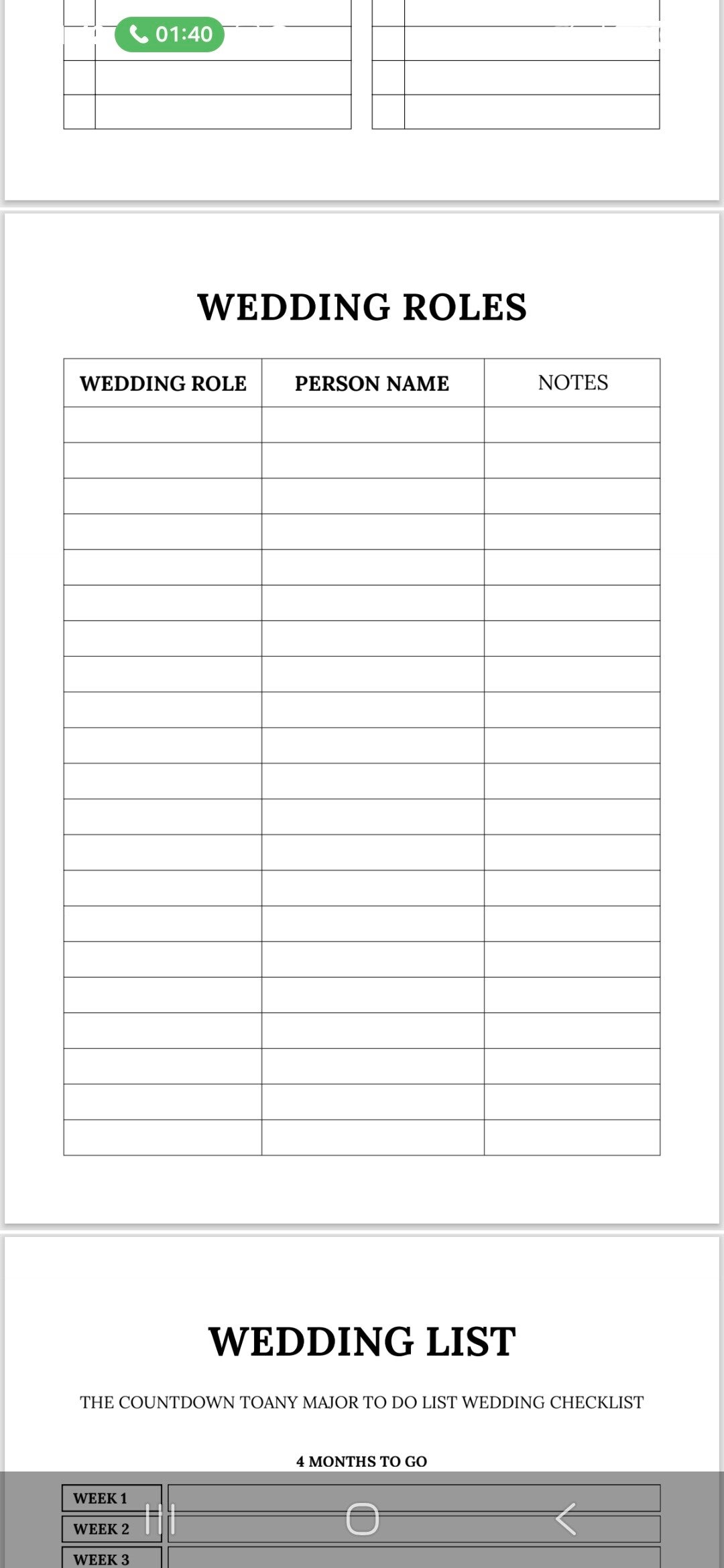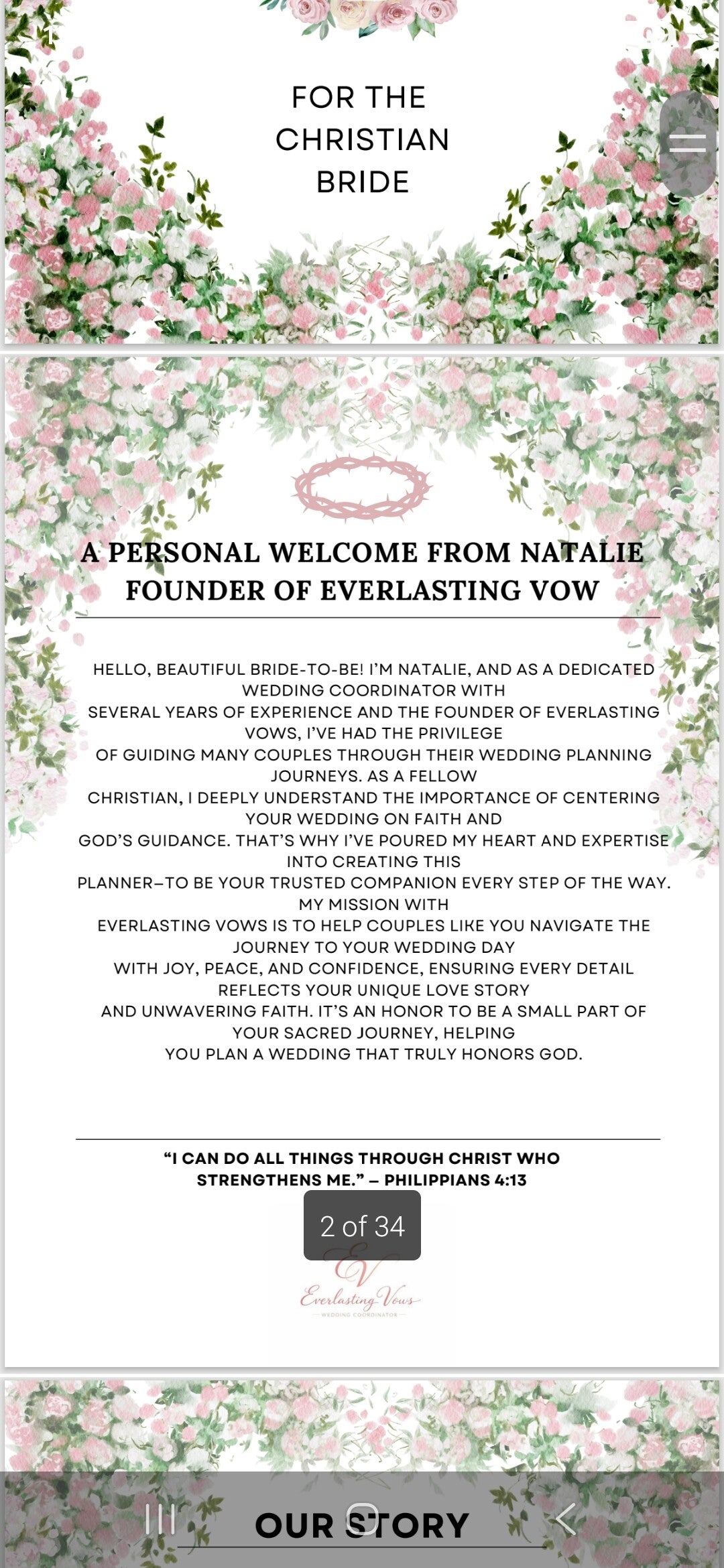 The pdf allows you to download and add as many of each page you need. For small weddings or big you can keep on top of it all. With faith and god at the head.